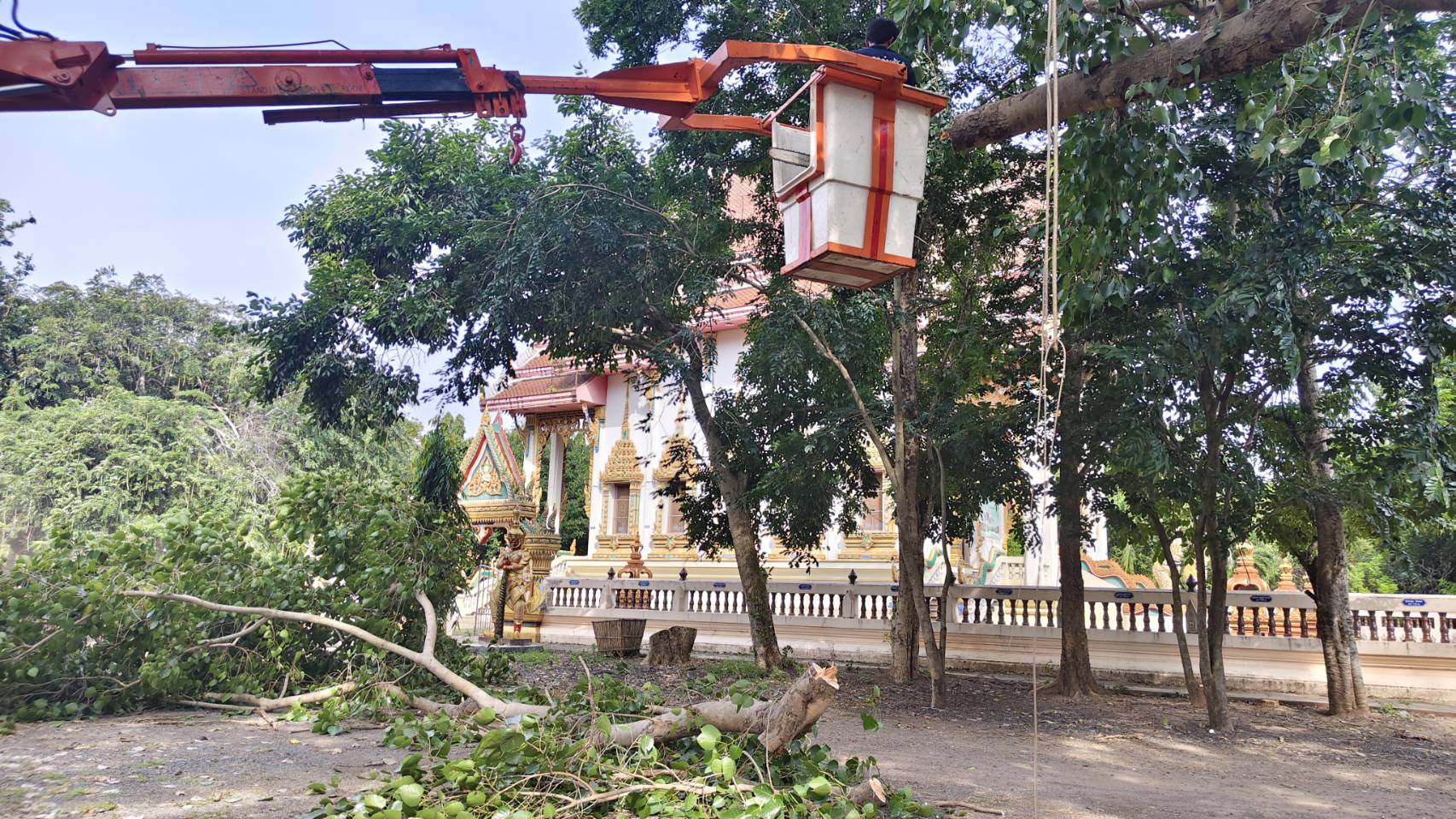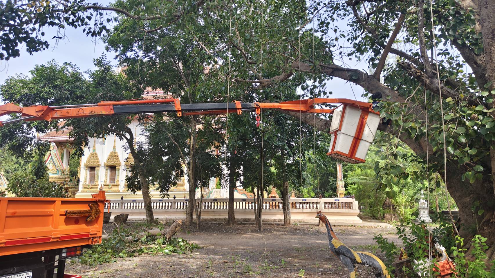 วันที่ 25 พฤศจิกายน 2568 รถกระเช้า องค์การบริหารส่วนตำบลลุงเขว้า ตัดต้นไม้ เพื่อปรับปรุงภูมิทัศน์ ภายในวัดบ้านลุงเขว้า ตำบลลุงเขว้า อำเภอหนองบุญมาก จังหวัดนครราชสีมา